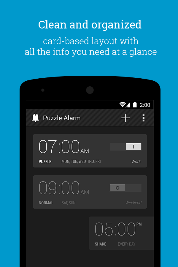 Puzzle alarm clock is a popular free android tools app. Stock alarm clock apps were too easy on us in the mornings, and we needed an app that will make sure we get up in time. Puzzle alarm clock is a neat app that helps you set alarm clocks with neat features that require you to solve puzzles to make sure that you're up before you disable the alarm. Uniquely android is a series we started that shines the spotlight on those apps that take advantage of the unique capabilities of the platform and provide an. For more information on downloading puzzle alarm clock to your phone, check out our guide: The description of alarm clock puzzle ⏰. This clock launches it's rotor in the air, and you have to catch it and return it to it's base to silence the clock. It's called i can't wake up, and it's available for android or ios.depending on how you set it up, it can be anything from a slightly more effective version of your current alarm clock to. Loud alarm clock vibrating with bed shaker for heavy sleepers deaf and hard of hearing,dual alarm clock with usb charger, 7.5'' large display, dimmer, snooze & battery backup ( white) 4.5 out of 5 stars. As the name suggests, puzzle alarm clock is all about forcing you to wake up through puzzle solving. This early rise alarm clock app comes with some great features. There is a free version an. There are 3 difficulty levels.